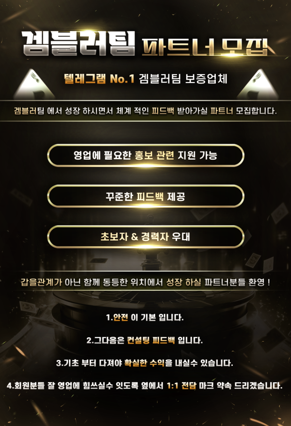 겜블러팀 에서 성장 하시면서 체계 적인 피드백 받아가실 파트너 및 회원 모집합니다.